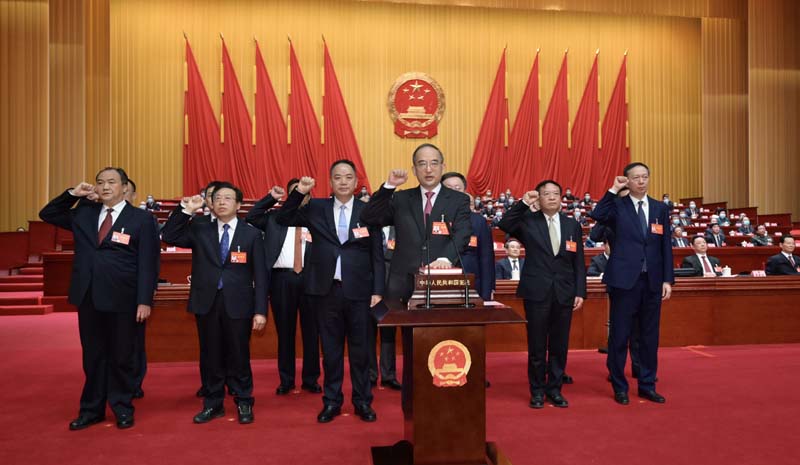 会议举行了宪法宣誓仪式。新当选的省人民政府省长,省人大常委会副主任、秘书长、委员,大会表决通过的省人大部分专门委员会主任委员,在与会代表的共同见证下进行了宪法宣誓。